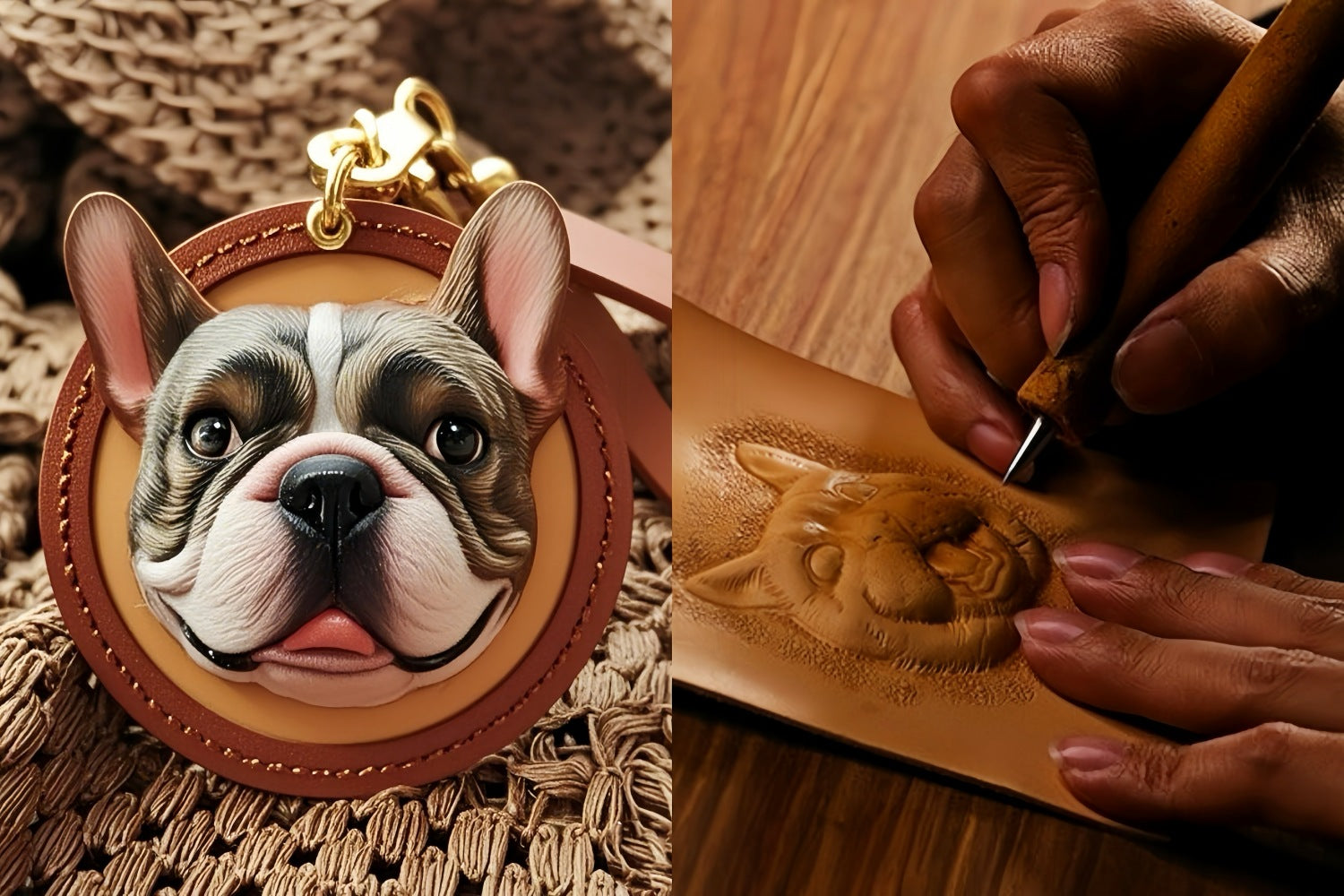 Celebrate your pet’s charm with a custom leather keychain, handcrafted to mirror their unique face down to the tiniest whisker. Each keychain is made with precision and care, capturing the personality and distinctive features of your furry friend.