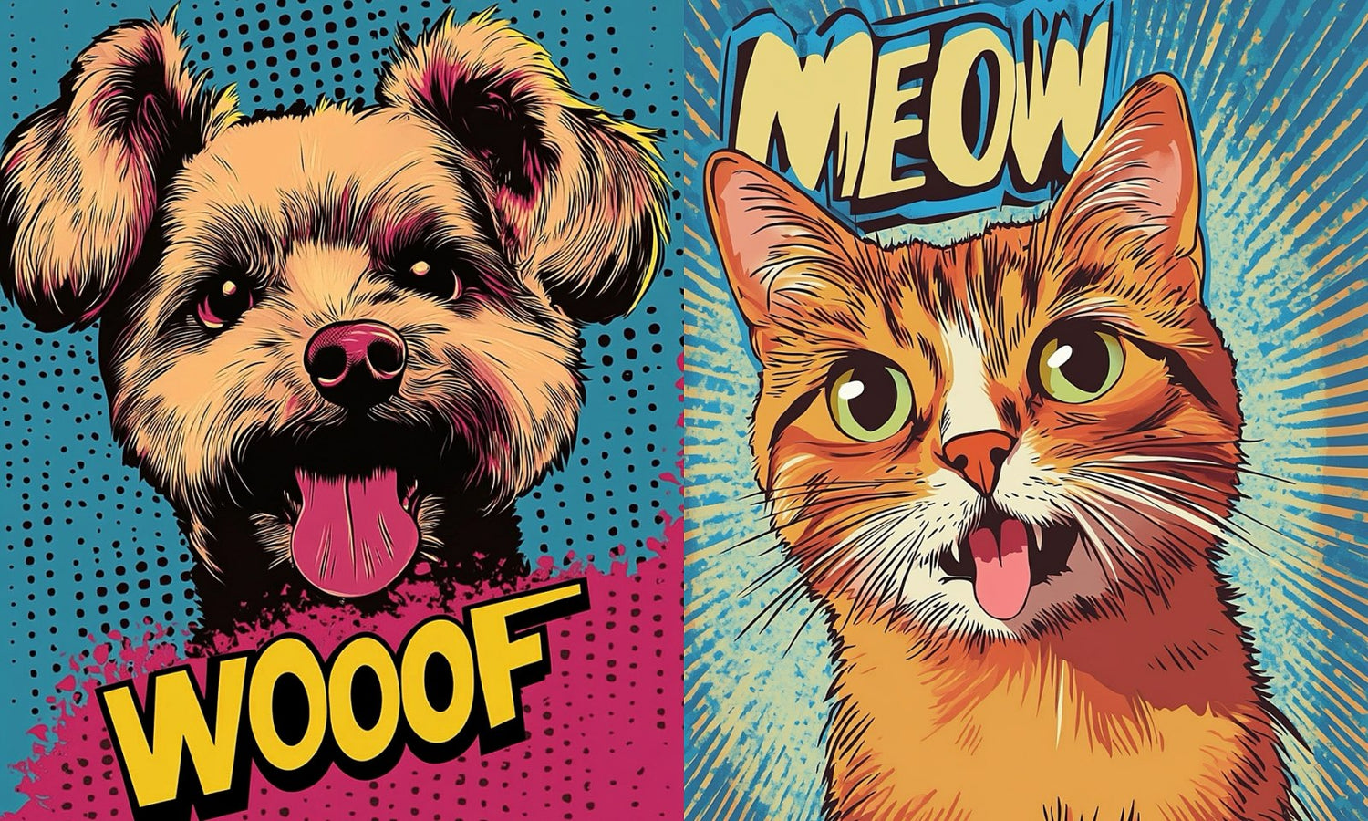 Bring a burst of energy to your home with our Pop Art custom pet portraits! Vibrant colors and bold, playful designs capture your pet's personality, adding a lively touch to any room.