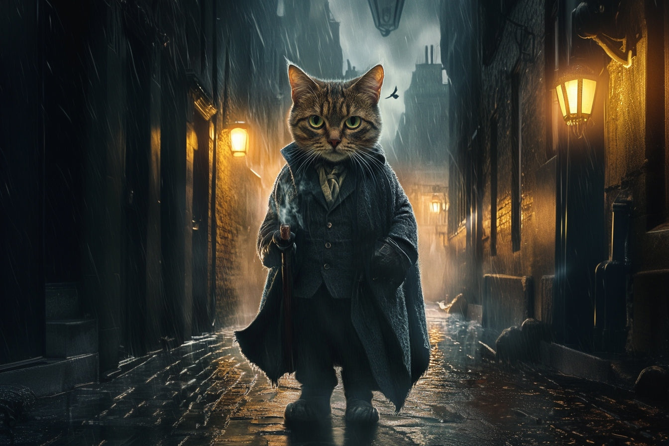 Turn your little buddy into a sharp-witted sleuth with this unique pet portrait! Sauntering through the misty daybreak, clad in mystery-solving attire with a sprinkle of charm, geared up to tackle any brain-teaser.