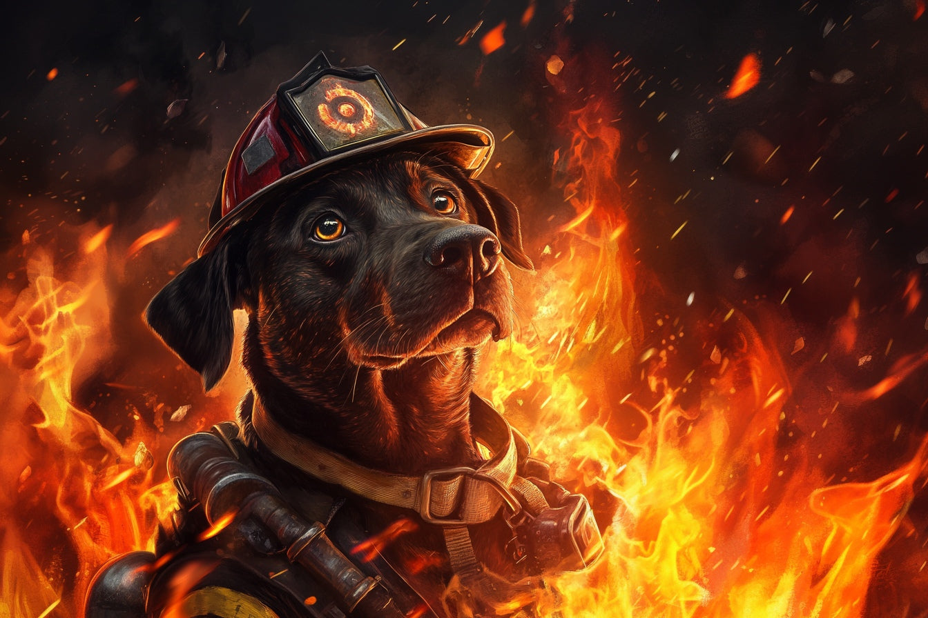 Honor your brave and intelligent pet as a heroic firefighter! Capture the essence of your pet as a heroic firefighter in these striking animal portraits, symbolizing their strength and loyalty.