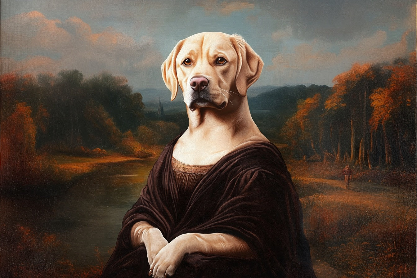 Transform your pet into a Renaissance icon with this Mona Lisa-inspired portrait. Timeless elegance meets wagging tails, making it a perfect blend of history and charm for art-loving pet owners.