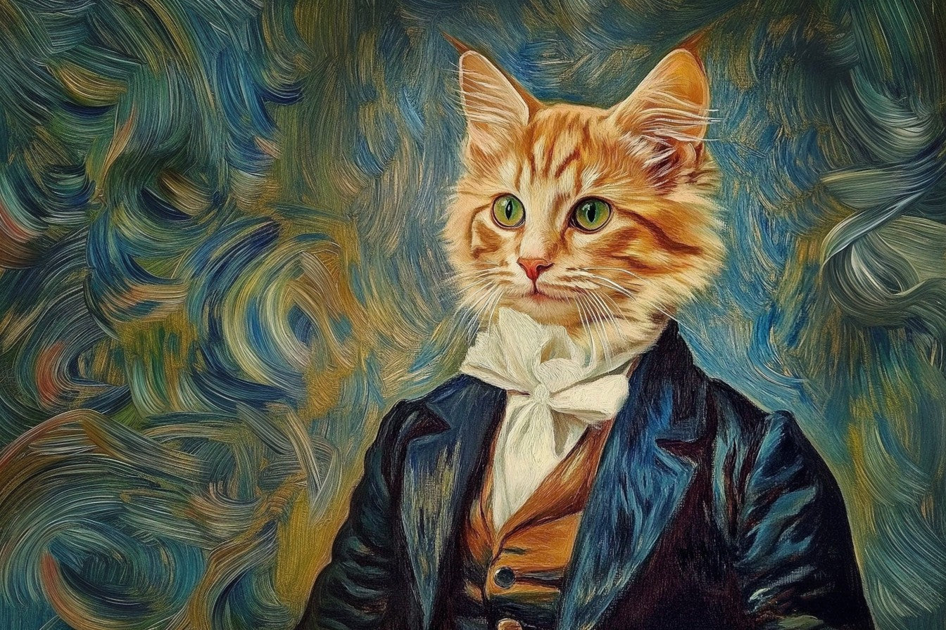 Bring your pet’s soulful gaze to life with a Van Gogh-inspired pet portrait. Vibrant brushstrokes, expressive textures, and rich colors capture their essence in a masterpiece as timeless as your bond.