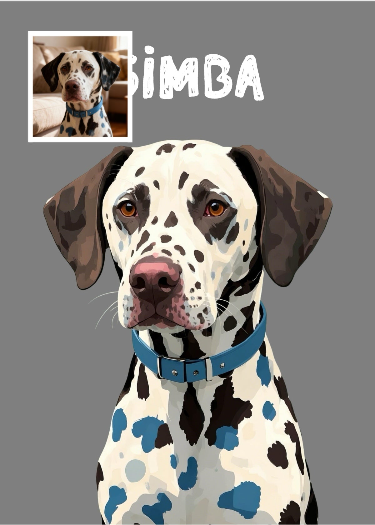 We’re not an AI face-swap tool. Our skilled digital artists match each pet’s features and style, tailoring clothing and colors to create one-of-a-kind portraits.